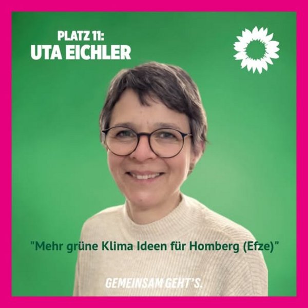 Uta Eichler ist Platz 11 der Liste von Bündnis 90/DIE GRÜNEN – Ortsverband Homberg (Efze) für die Kommunalwahl am 15.03.2026.